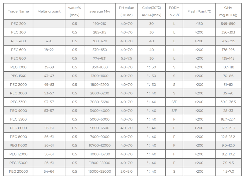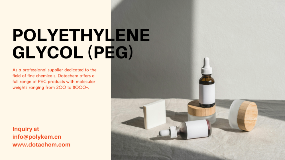 Njengomphakeli ochwepheshe ozinikele emkhakheni wamakhemikhali amahle, i-Dotachem inikeza uhla oluphelele lwemikhiqizo ye-PEG enesisindo samangqamuzana asuka ku-200 kuya ku-8000+.